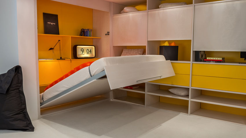 Postelja, ki se skrije v omaro, je več kot primerna za manjša stanovanja in garsonjere, kjer je čez dan potrebnega čim več bivalnega prostora, zvečer pa je kvalitetno spanje bistvenega pomena.