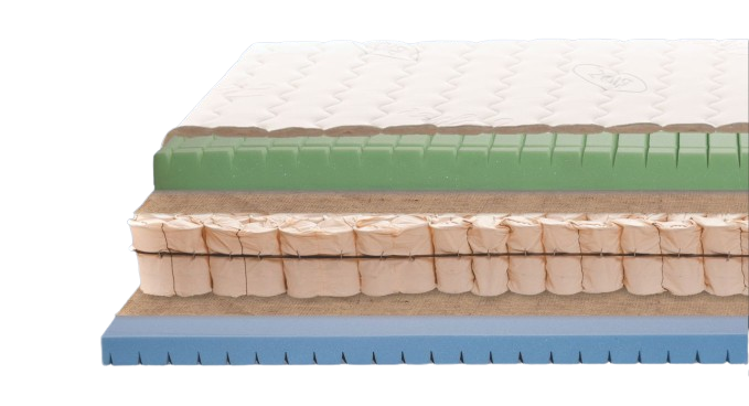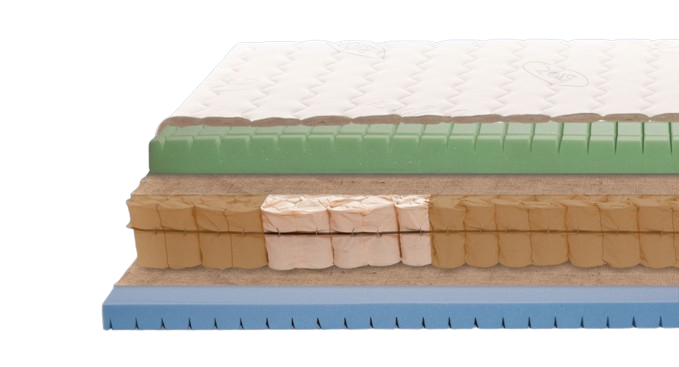 - obojestransko: juta, 6cm antibakterijskega strukturiran puhin (odprto-celična pena – oblika kockice, mnogo-conska plast), dve niansi trdote (zgoraj/spodaj)